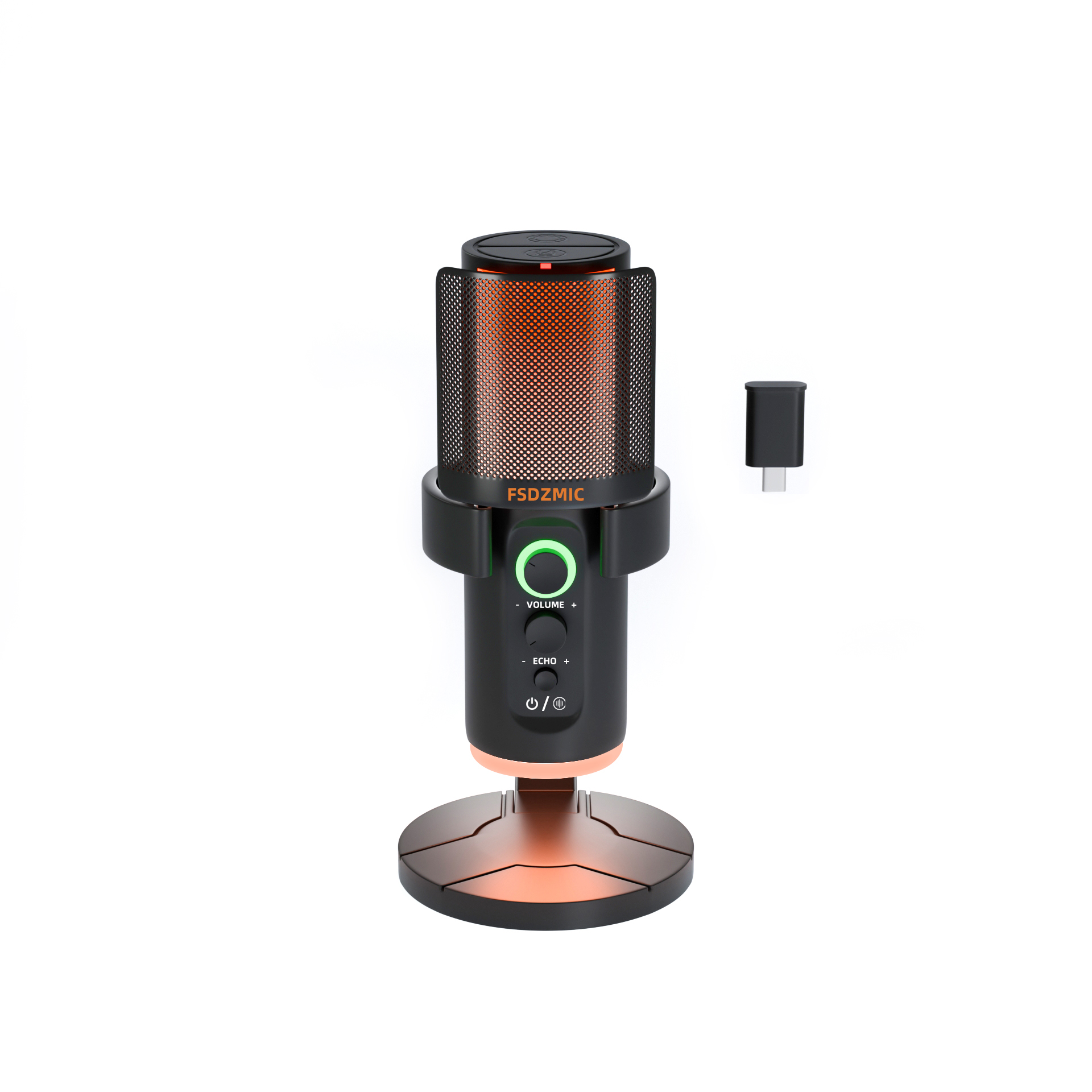 FS-WX2无线有线两用 RGB电容麦克风 带RGB灯光控制,降噪,混响,静音,即时监听。